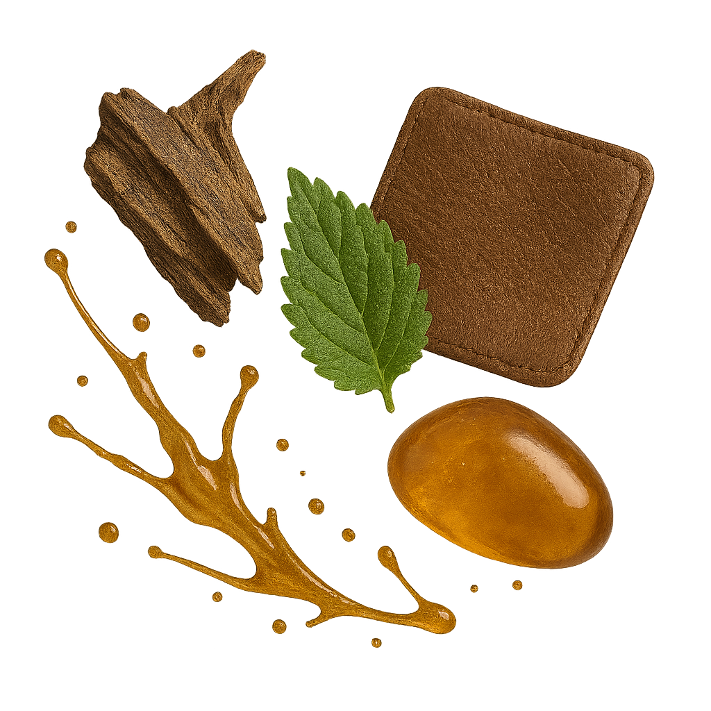 Oud, Patchouli, Leather, Amber